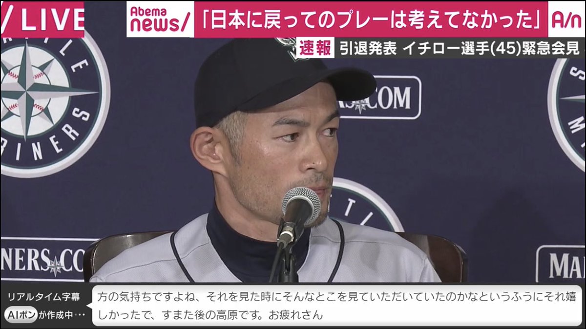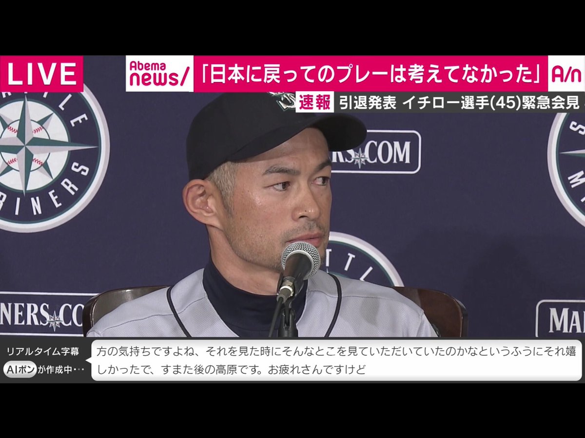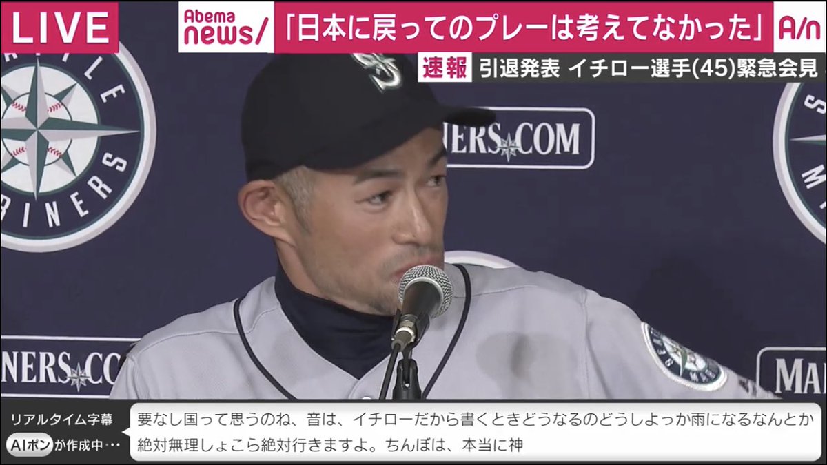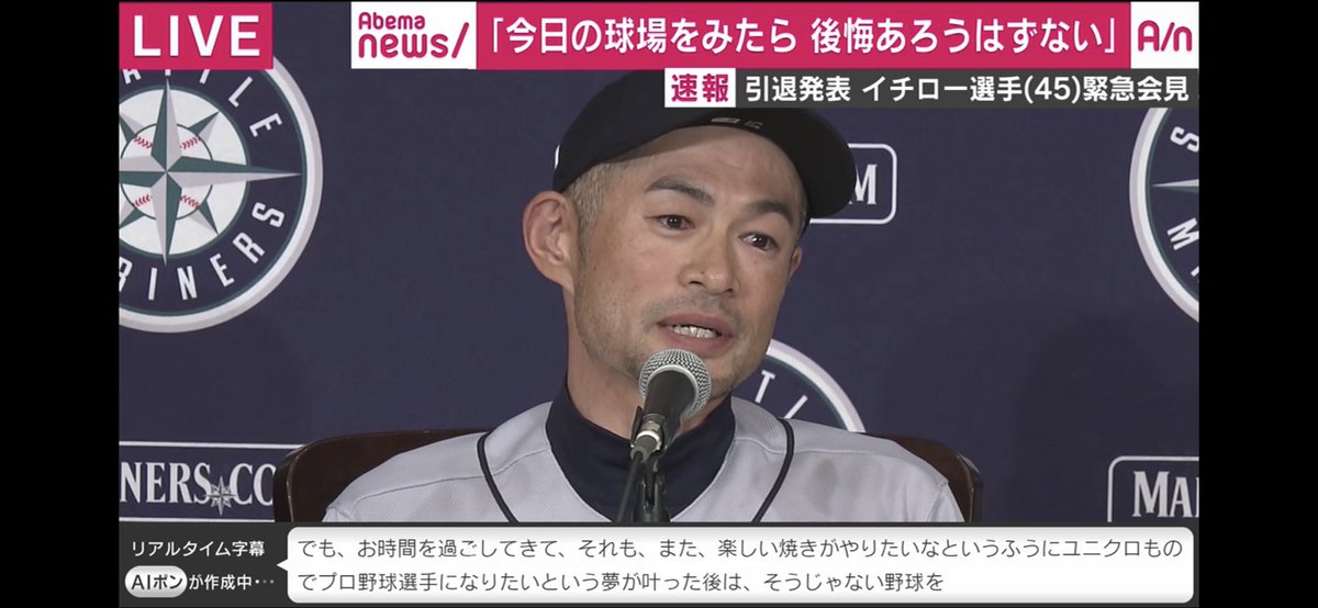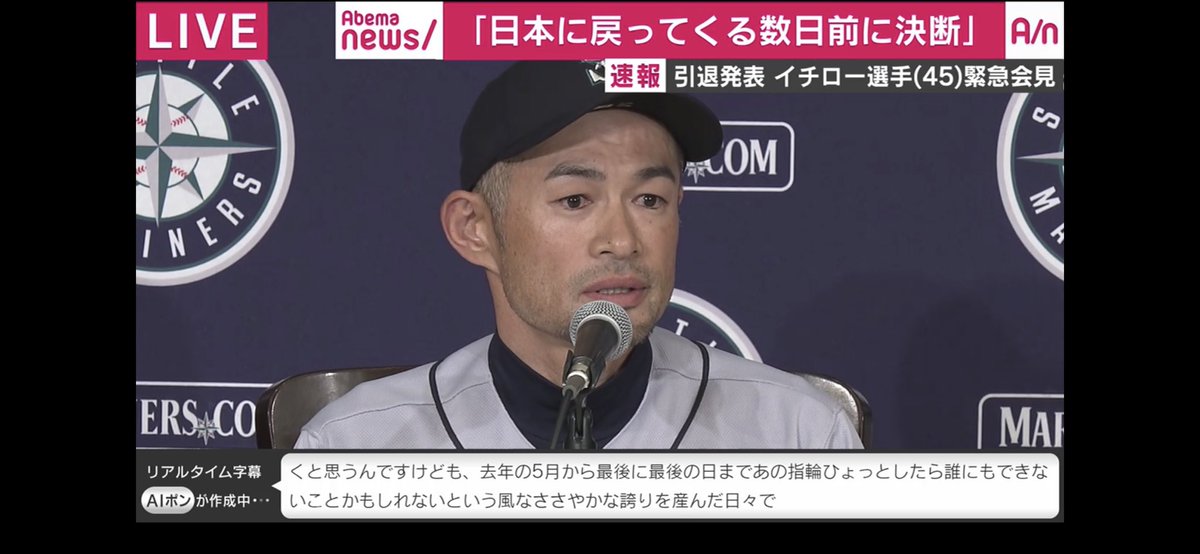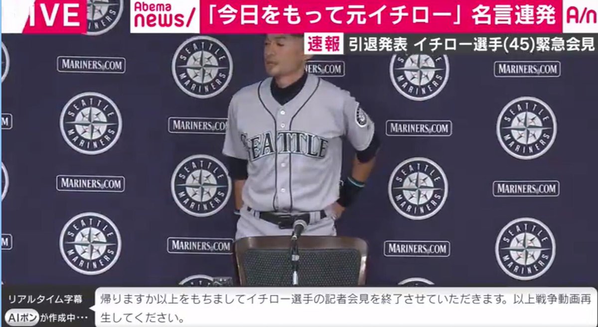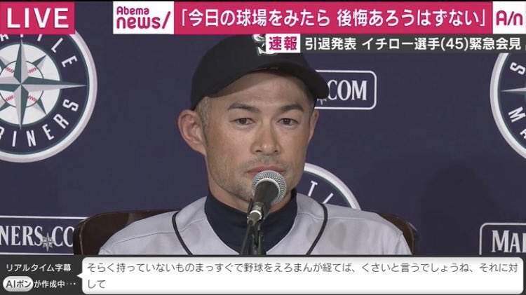 イチロー引退会見でのabema字幕の暴走 なんjまとめ草不可避www