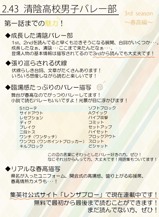 2 43 清陰高校男子バレー部 感想 レビュー 読書メーター