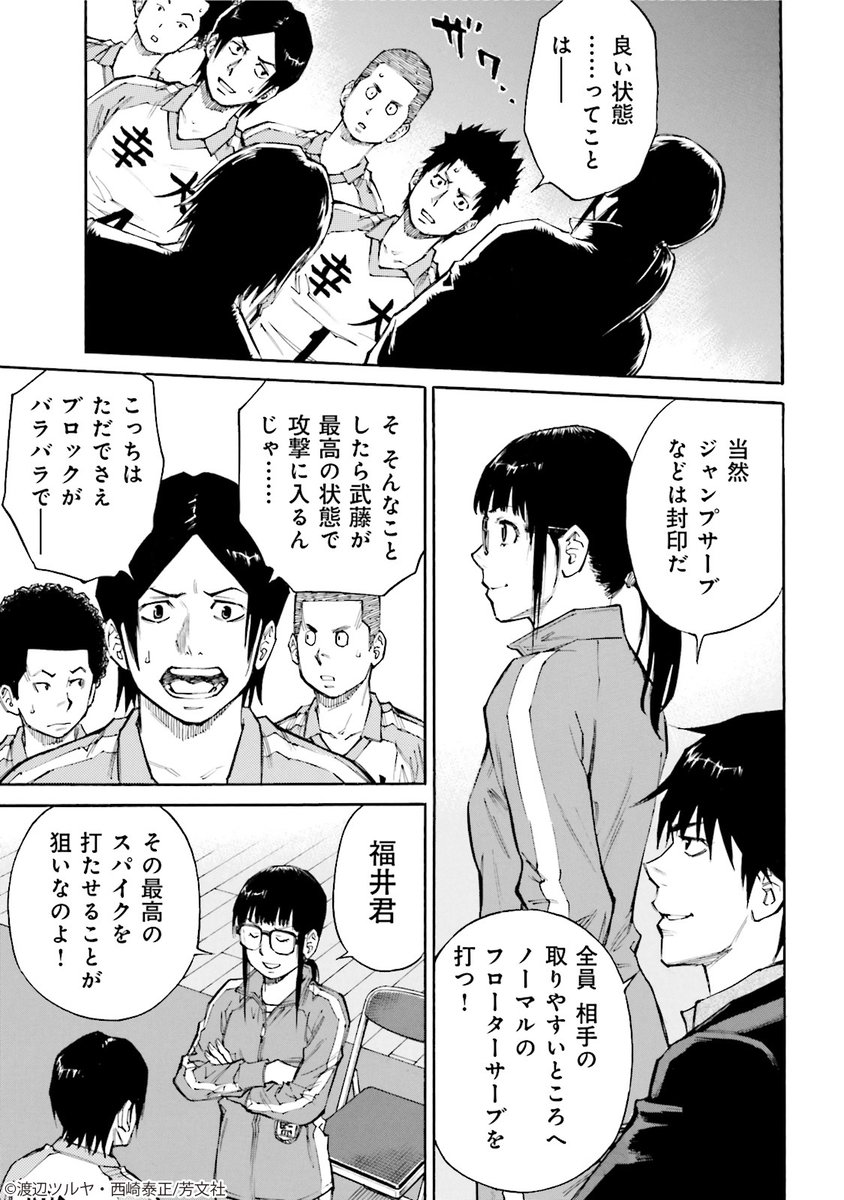 ট ইট র 神様のバレーtd 本日発売号からは戦略の変更を ネーム段階ではストレートブロックだった倉木が原稿ではクロスの三枚目として跳んでいます バレーはサーブ時のポジショニング以外は自由に動けるという利点を利用しています お楽しみください 神様の