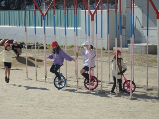 全校児童3人で一輪車初披露へ