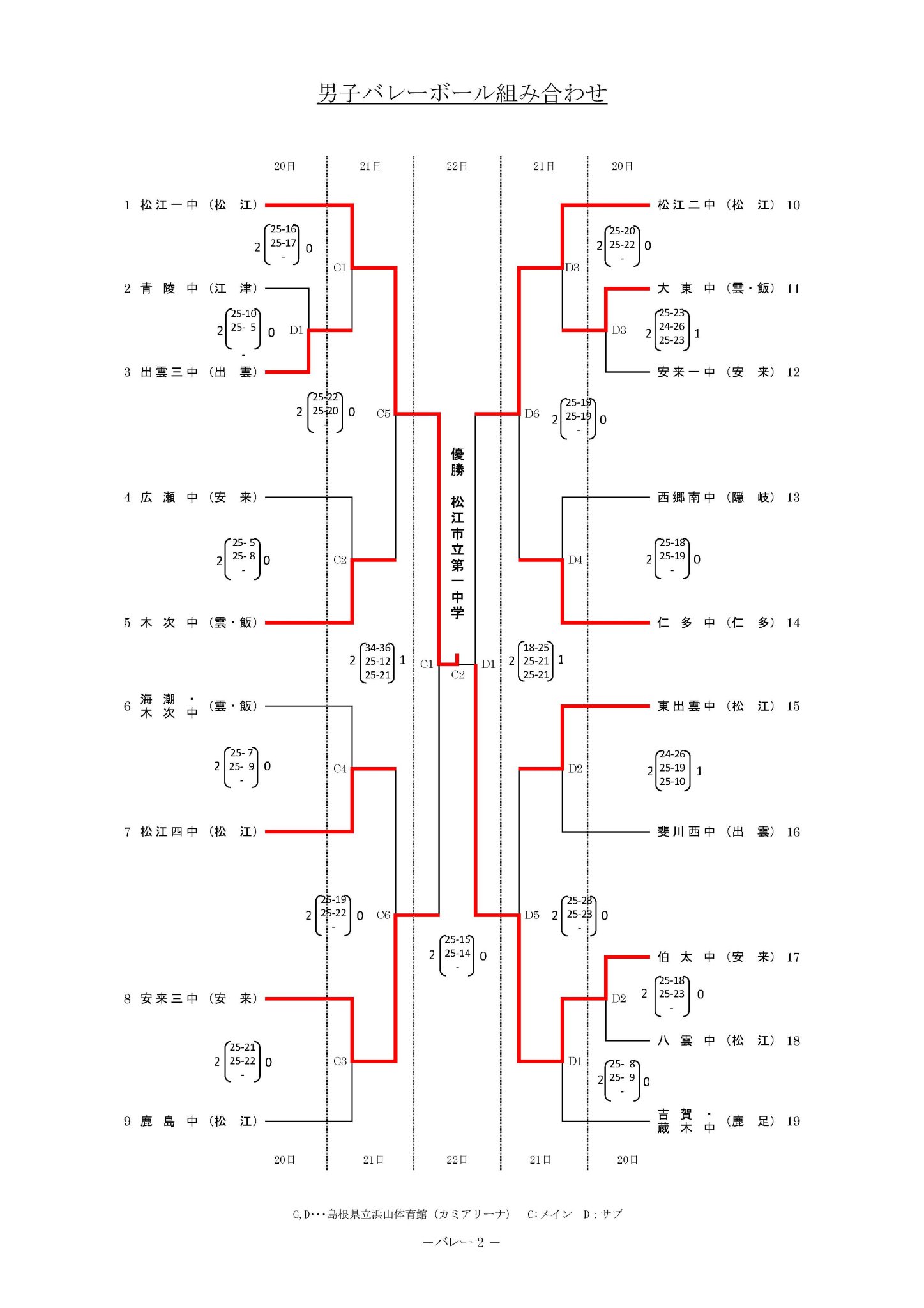 速報 出雲地区男女バレーボールの結果等 第二中学校