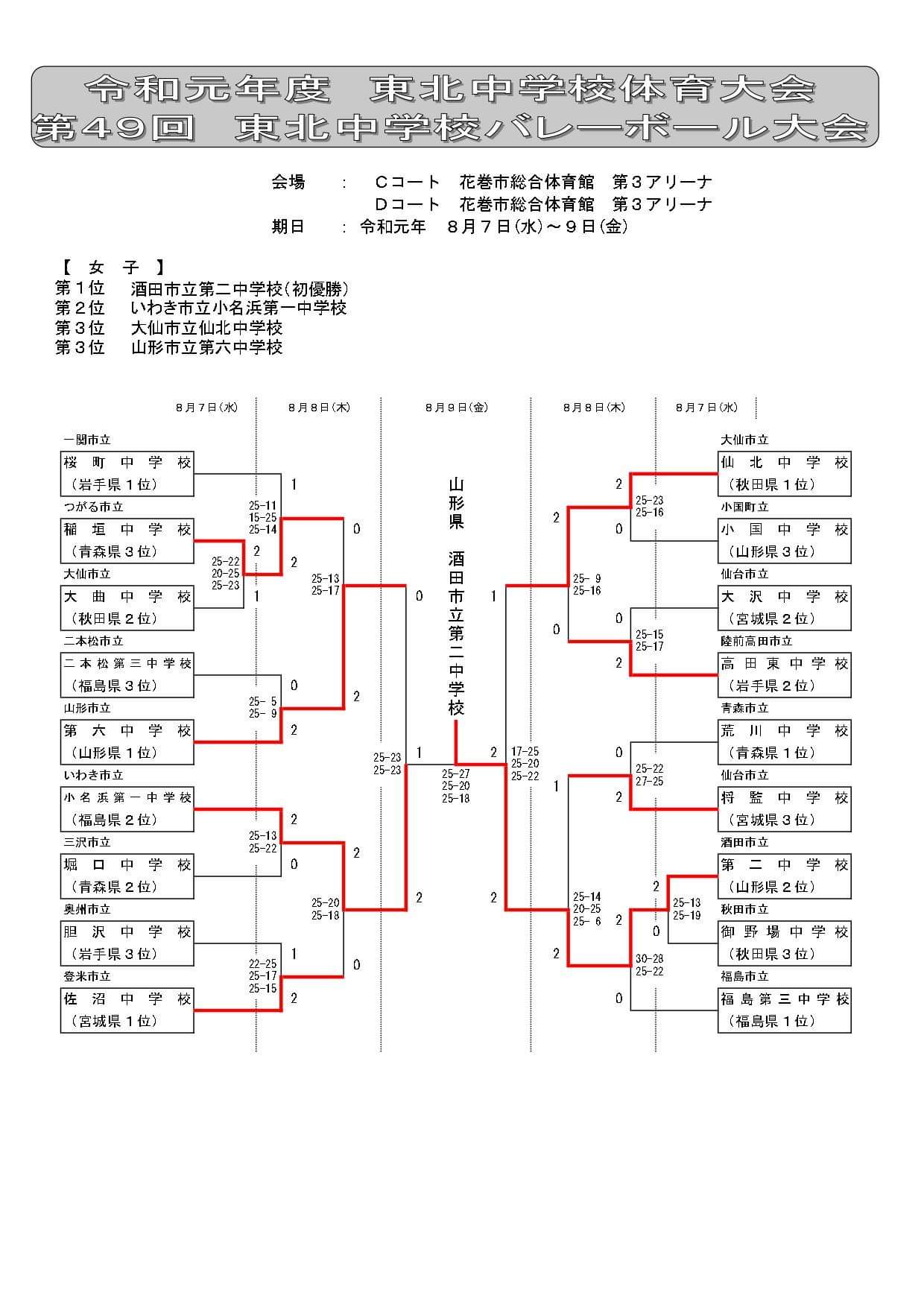 令和元年度第49回東北中学校バレーボール大会結果