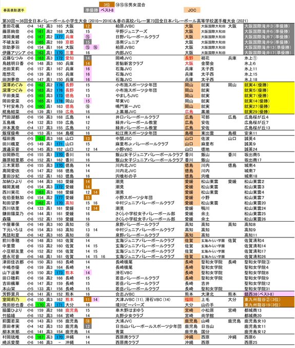 2020 春高バレー 男女 出場選手 最高到達点ランキング バレサポ